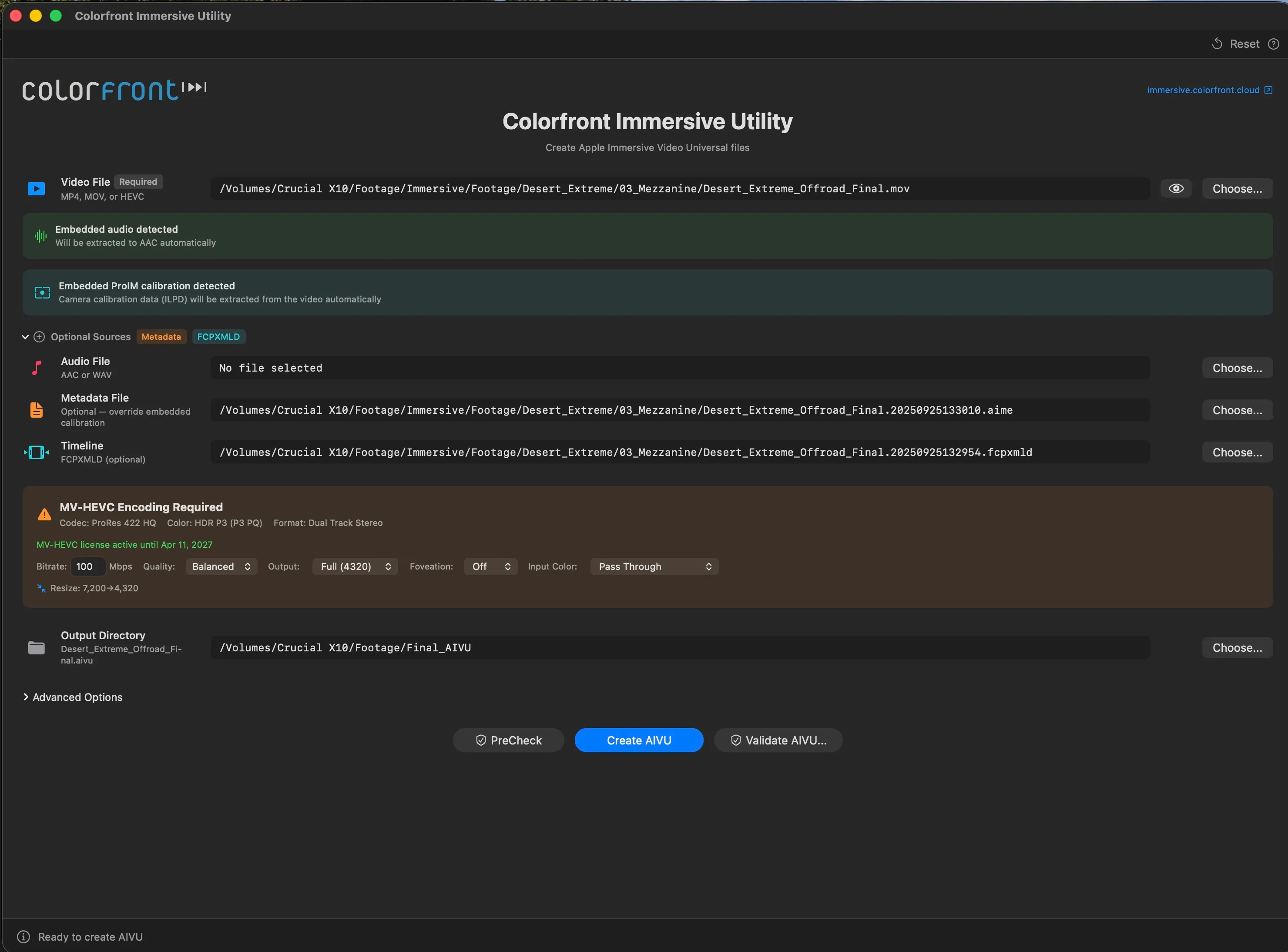 Apple Vision Pro opened up a whole new storytelling canvas — Colorfront Immersive Utility puts it in your hands. Drop in your video, let the app auto-detect camera calibration, and click Create AIVU.
